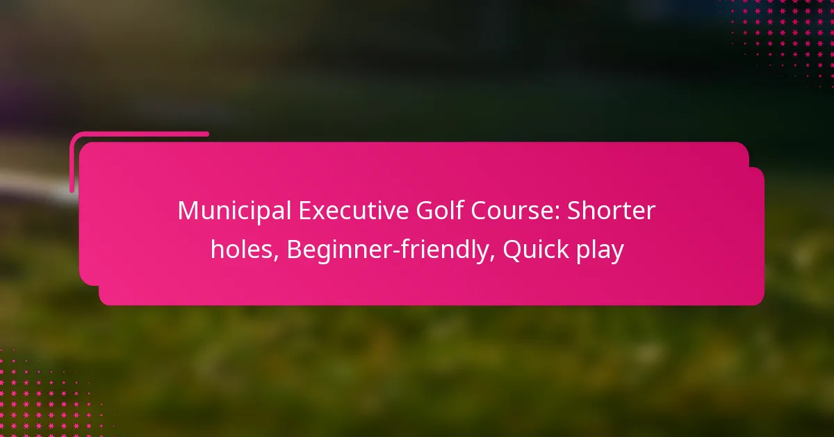 A municipal executive golf course is designed to promote quick play by featuring shorter holes that cater to beginners and those looking for a faster round. This layout allows players to complete their games in less time, making it an ideal choice for busy individuals or families seeking a recreational outing.
